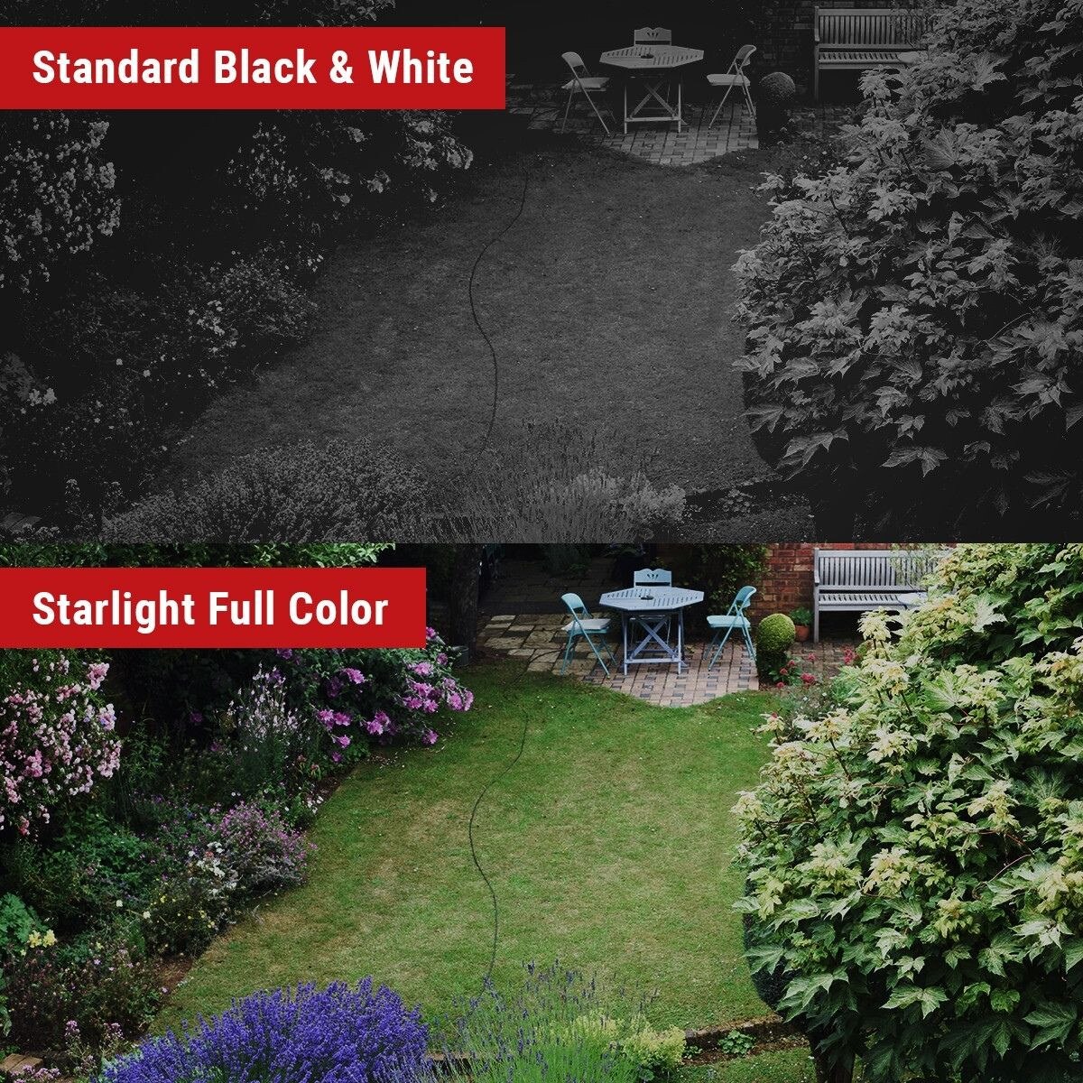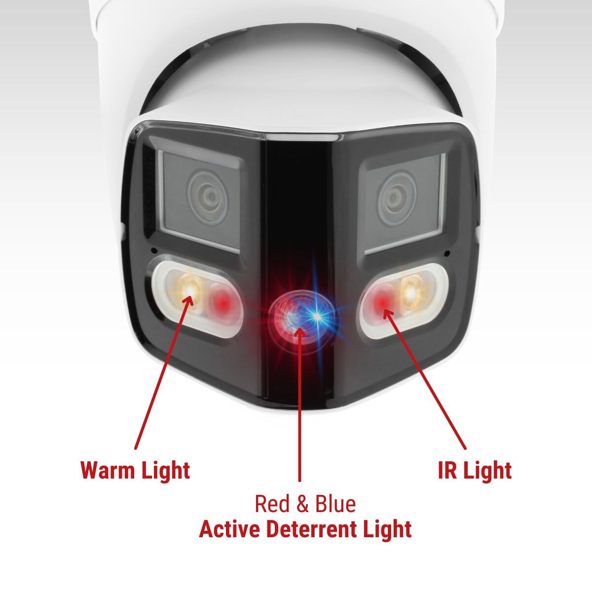 Active deterrence technology takes security to the next level: visible red and blue LEDs flicker and a customizable audio alert activates when a target is detected. This system works in harmony with smart dual illumination to maximize deterrence and visibility.